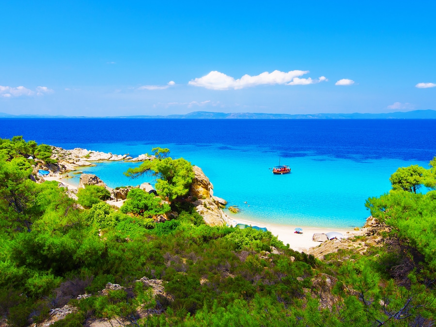 The pine-fringed beaches of Sithonia's peninsula offer crystal-clear waters perfect for swimming and snorkelling along its hidden coves. Explore charming villages like Nikiti and Neos Marmaras, where waterfront tavernas serve fresh seafood caught by local fishermen.