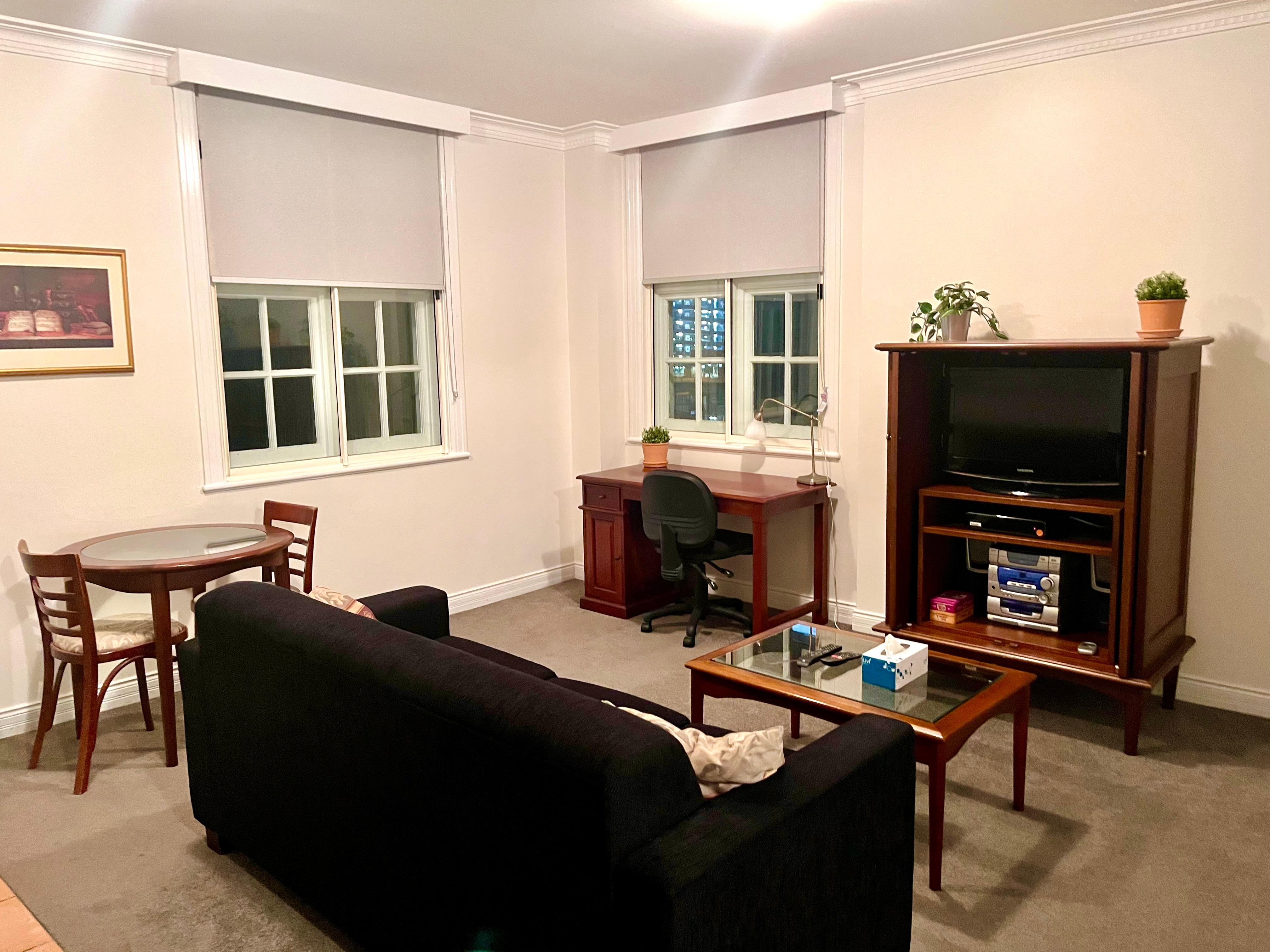 This is a lovely old art deco building in a central location. Beds are comfortable and they offer a good number of channels on Foxtel. However, the upkeep of the apartments is poor and there is no daily servicing done. I had to liaise to get lights and taps fixed and to get rubbish removed.