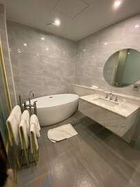 Room with unexpectedly luxurious bathroom