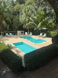 Yes, this property has 2 outdoor pools and a children's pool. Pool access is from 7:00 AM to 6:00 PM.