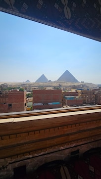 Pyramids Kingdom offers a front-row seat to Egypt's ancient world. This luxury guesthouse near the Giza Pyramid Complex includes a complimentary English breakfast. Explore the Great Sphinx and Pyramid of Khufu, then unwind at the on-site coffee shop after sightseeing.