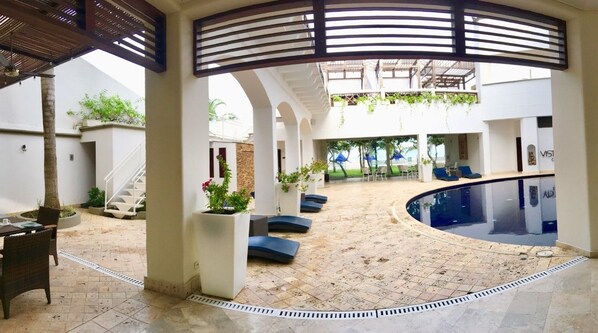 This hotel is a must from service to staff members to nightly rate to gourmet meals. Extremely modern, great amenities, right on the beach, gourmet breakfast, lunch and dinner... suite is superb (you even have your own massage table in your own ginourmous bathroom... absolutely loved this place to the point i extended my stay in Cartagena and stayed an additional 4 nights.