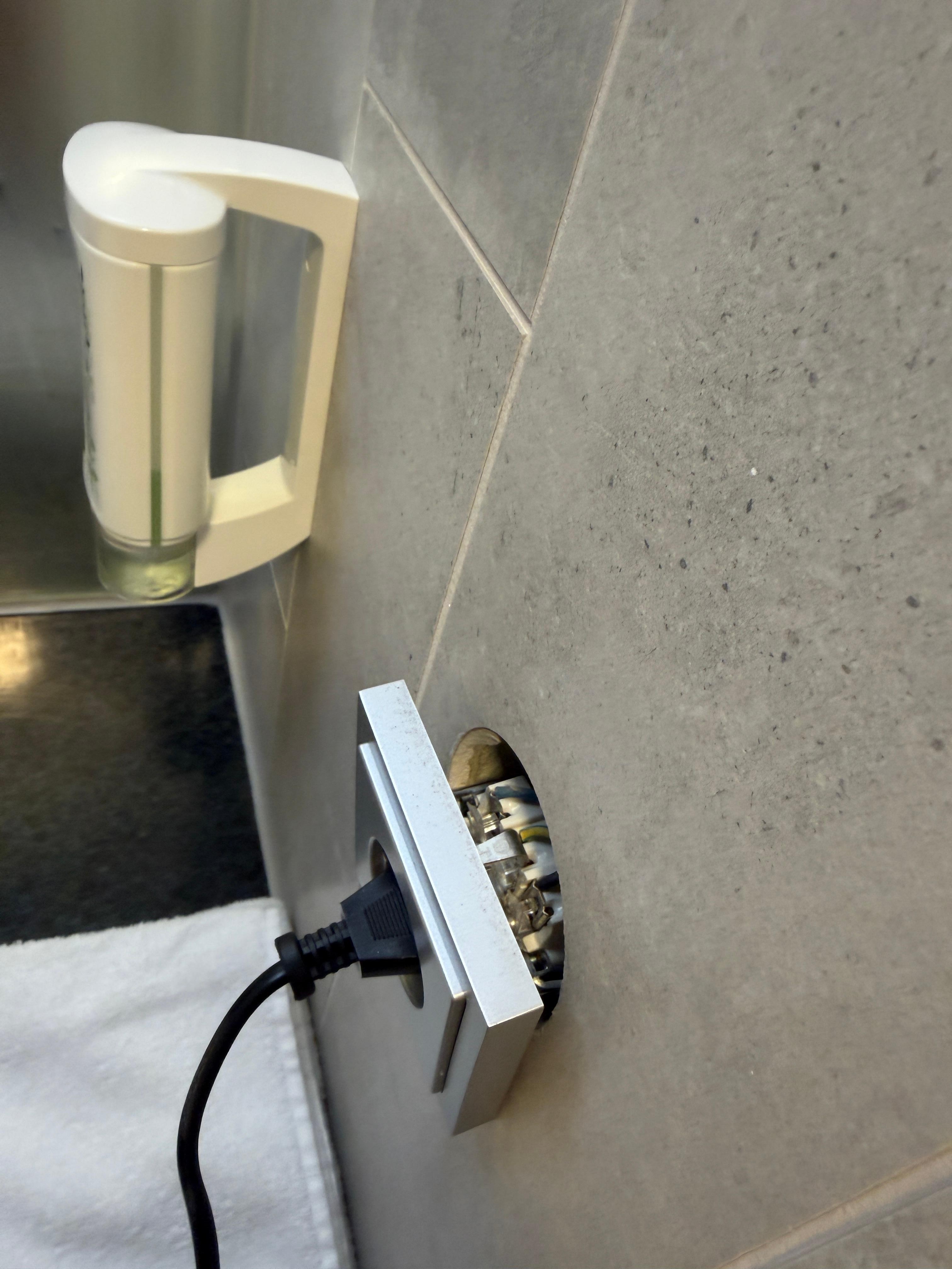 Badezimmer aus der Wand , so das die Kabel frei lagen . So etwas ist im Nassbereich unverantwortlich!