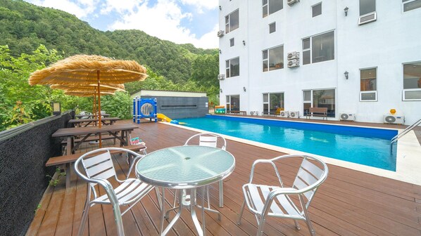 Travelers find a peaceful escape at Gapyeong Amante Kids Spa Pension. The outdoor pool offers a refreshing spot to unwind, family barbecue grills allow for outdoor meals together, and free in-room WiFi keeps everyone connected during their relaxing stay.