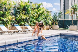 Recreational amenities at the aparthotel include an outdoor pool and a fitness centre.