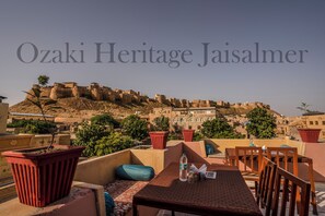 Hotel Ozaki Heritage, near Jaisalmer Fort, offers a taste of local culture. Guests can unwind at the daily manager's reception, plan adventures in the cozy café, and enjoy amenities like in-room WiFi and laundry services. The attentive staff consistently earns positive feedback.