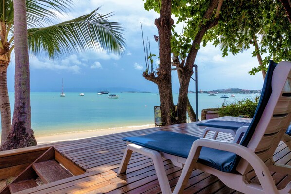 Travelers find the perfect island experience at Bangrak Pier Bungalow, where a peaceful garden invites exploration and the sunny terrace offers a place to unwind