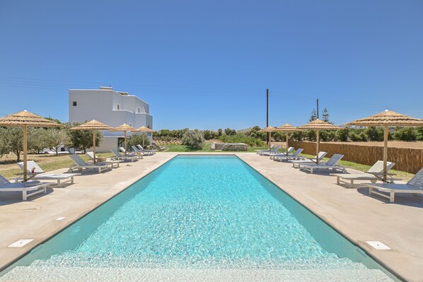 Ktima Lino sits between the sun-kissed beaches of Agios Prokopios and Plaka, creating an ideal family retreat. Guests enjoy cooked-to-order breakfasts, sip refreshing cocktails at the poolside bar, and connect with free WiFi while unwinding in the garden.