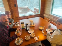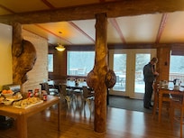 Travelers enjoy a continental breakfast at Northern Sky Lodge before exploring the picturesque garden. Serene surroundings offer a perfect base for nearby adventures, while in-room WiFi keeps everyone connected. Express check-in/out adds convenience to the tranquil experience.