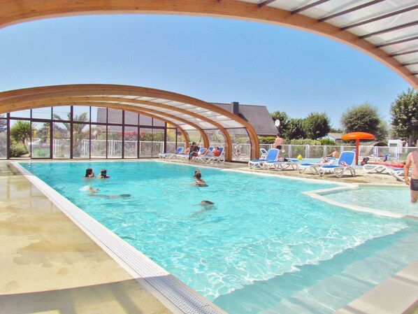 An indoor pool, a children's pool and a seasonal outdoor pool are on site.