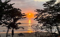 Beautiful room looking out to beach and sunset