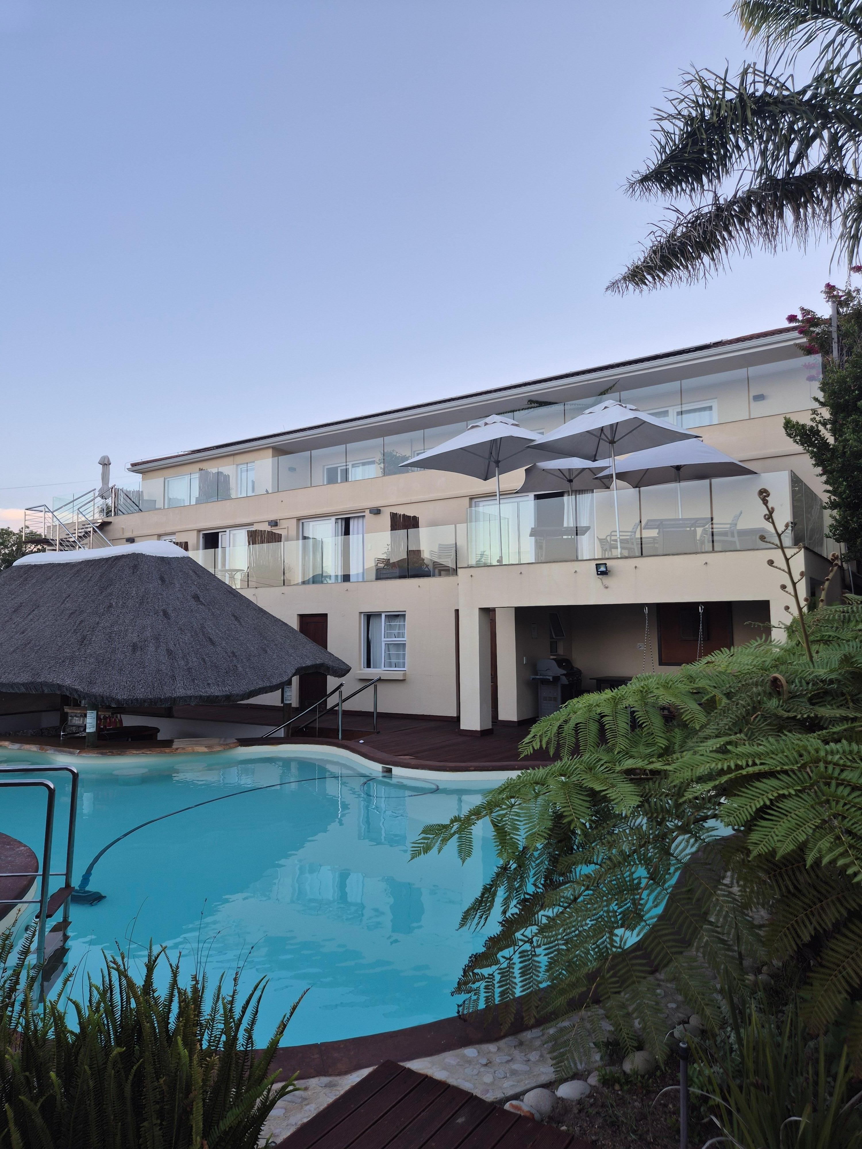 Owner invited us for a beer on arrival and helped point us in the right direction for somewhere good to eat that night. Property is laid out very well and room was spacious and clean with wonderful views on the bay. Did not get to use pool unfortunately ad we arrived close to sunset and left early the jext morning. Breakfast was fantastic, too much choice for us that morning as we were about to do a bungee jump and did not want to over eat! Very tasty and great choices. When we visit SA again we would definetly book again as only did a small taster of the area.