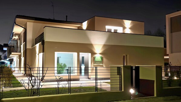 - Well-lit path to entrance