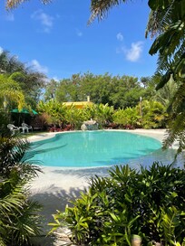 Yes, this property has an outdoor pool and a children's pool. Pool access is from 8:00 AM to 6:00 PM.