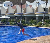 Yes, this property has 2 outdoor pools. One of the swimming pools is closed seasonally each year from September 17 until November 13.