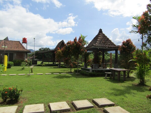 Balkondes in Bumiharjo offers a quiet retreat with a garden setting and a restaurant serving regional dishes. Guests enjoy free WiFi and comfortable spots on the sun-warmed terrace. Reviews often highlight the property's distinctive environment.