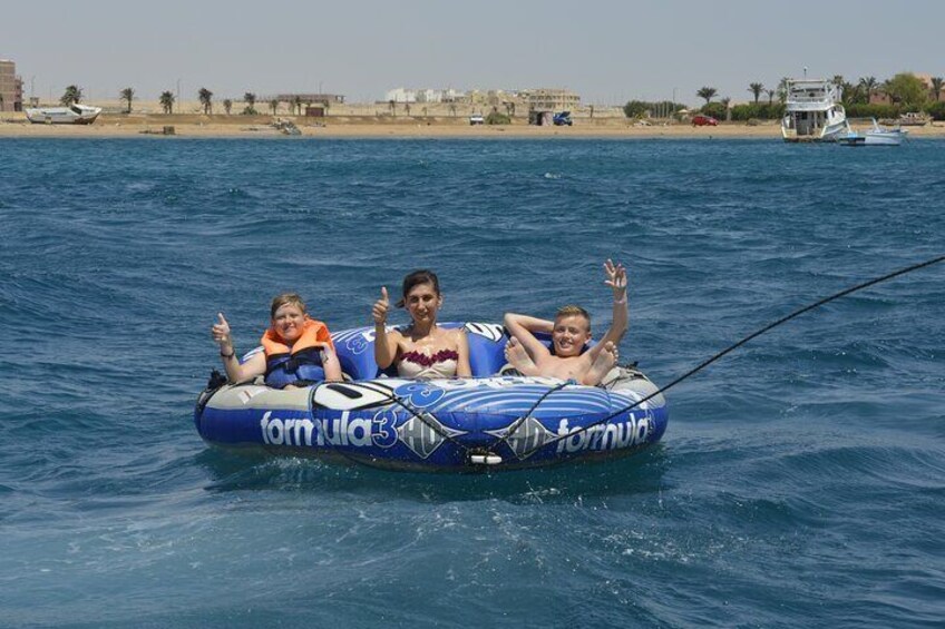 Kick off your day with a relaxing pick-up in a private, air-conditioned vehicle from your hotel. Then, head to the beach and jump straight into the action with an exciting banana boat ride. Hang on and enjoy the laughter as you're pulled across the dazzling waters of the Red Sea, splashing through waves with your group.