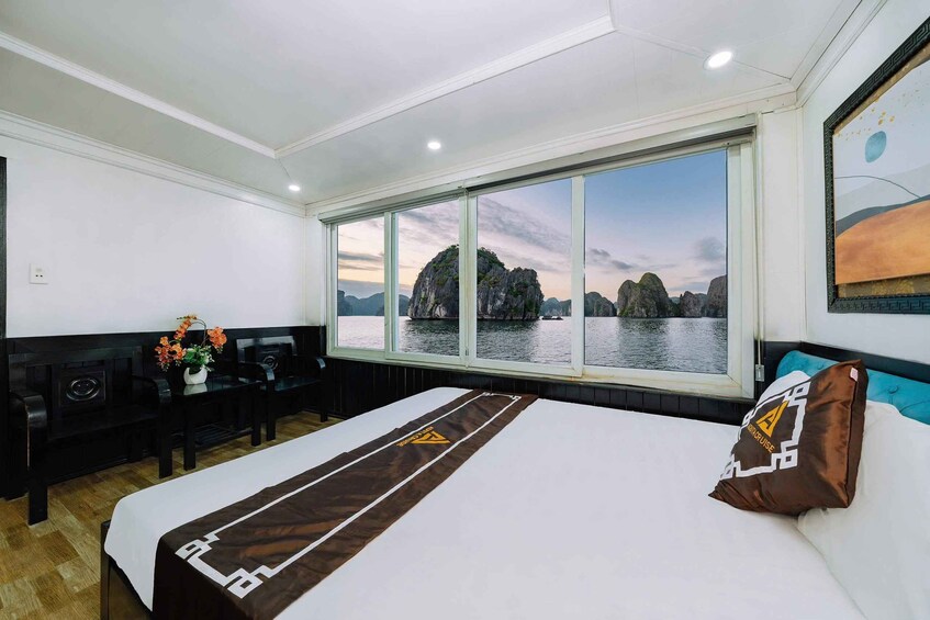 Enjoy lunch on the boat with a selection of Vietnamese dishes, including seafood and vegetarian options.