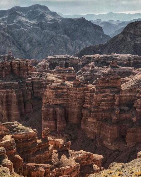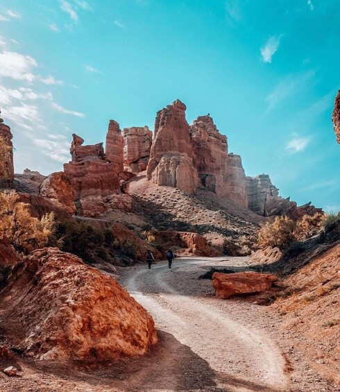 Next, the journey continues towards the Charyn Canyon region—home to a trio of dramatic canyons that will take your breath away. Stop first at Black Canyon, known for its rugged, dark cliffs and panoramic views. Then head to Moon Canyon, with its wavy, surreal formations that feel like another planet. Finally, visit the iconic Charyn Canyon, often compared to a mini Grand Canyon, where you’ll marvel at the towering rock formations carved by wind and water over millions of years.