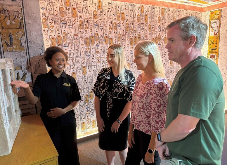 Guided exploration of recreated tombs of Pharaohs and their Queens