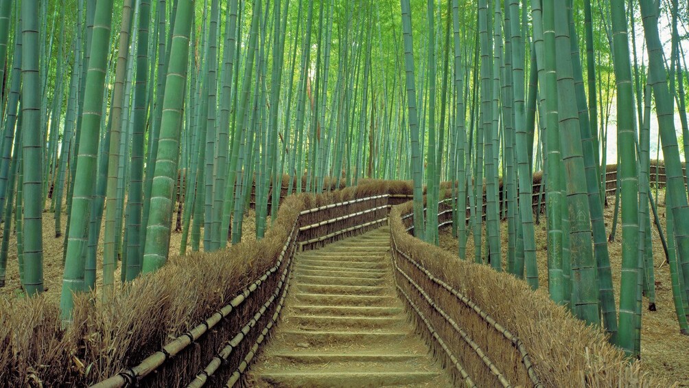 Next, make your way into the stunning Sagano Bamboo Forest, traversing a surreal footpath in the dappled sunlight that streams through sky-high curtains of bamboo. Soak up the serenity of this mystical, 330-foot (100-m) trail and snap photos with the towering canes as your backdrop.