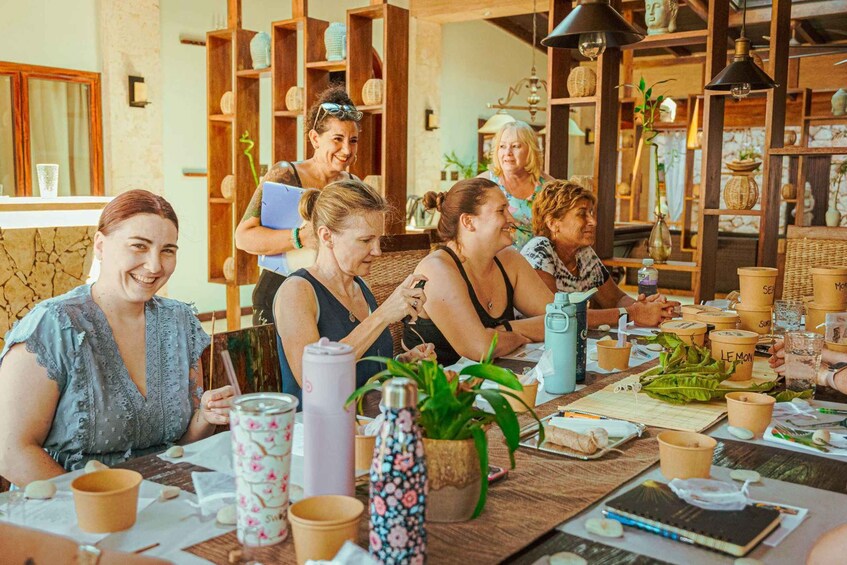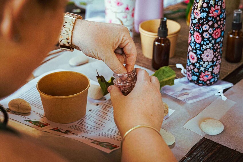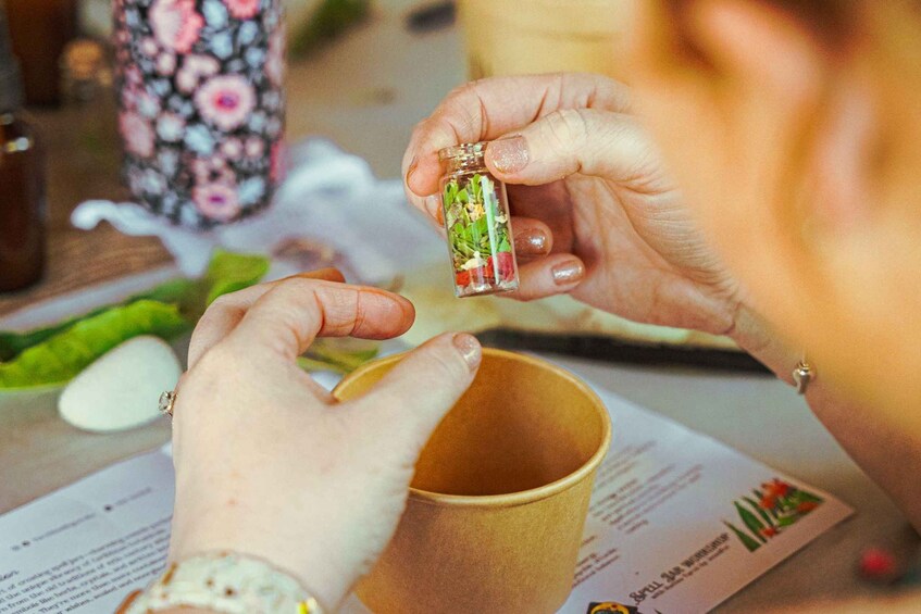 The workshop starts with a moment of calmness to help everyone centre their thoughts and focus on their wishes or goals. Our guide will then explain the significance of each ingredient, assisting participants in making choices that resonate with their individual intentions.