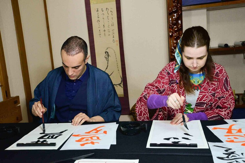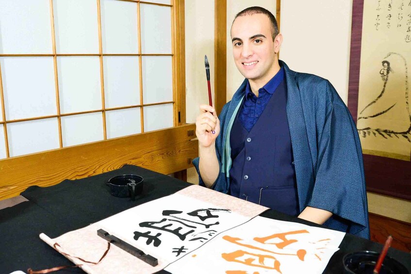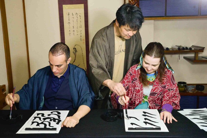 We don’t just give you a textbook. Our instructor will come to your table and write a custom sample of your name (in Japanese characters) or favourite word right in front of you. Watching the professional brush movement live is a special performance in itself.