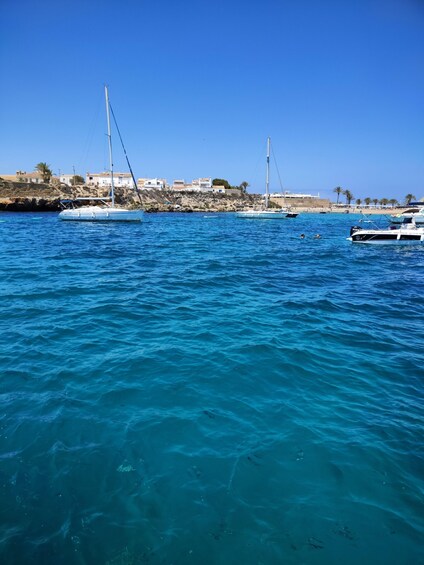 Enjoy a private boat trip on crystal clear waters, with stops to swim, relax in the sun, and admire unique landscapes. Ideal for couples or small groups looking for a little privacy. Includes 2 bottles of premium cava and 1 SUP.