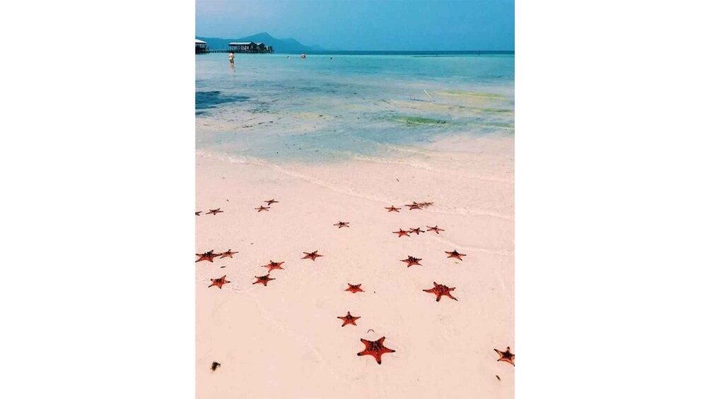 After lunch, board a small boat to Hàm Rồng Cape and Starfish Beach, where shallow crystal-clear waters are home to vibrant red starfish. Walk along the beach, take photos, and enjoy the unique natural scenery (please admire the starfish responsibly without touching them).