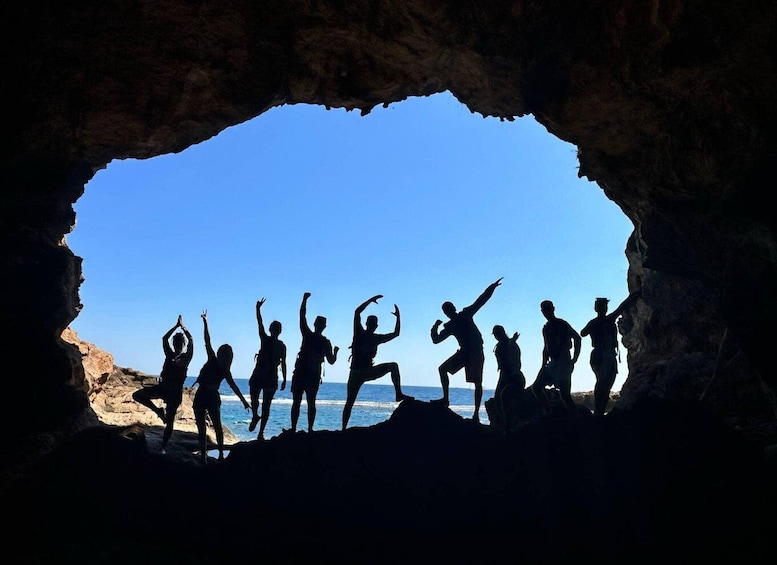 This exciting kayaking and caving activity starts at the beach of Les Rotes, Denia, with instructions and a detailed itinerary. After 20 minutes of paddling along cliffs and coves, you arrive at the Cova Tallada to snorkel and explore its interior, a former quarry used for local constructions. The cave houses cuts in the stone and carved fountains, providing filtered water through stalactites. After exploring, you will continue to the San Antonio cove and the lighthouse of San Antonio cape before returning to Les Rotes. At Alicante Aventura we offer you a real kayaking experience, providing kayaks, safety equipment and instructors.
