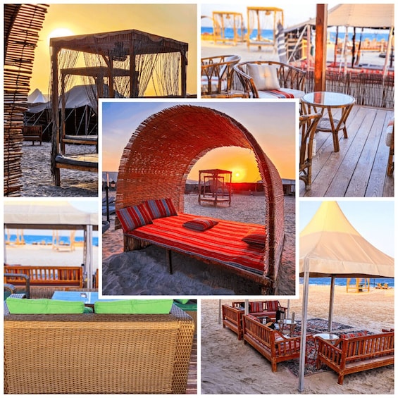 Experience luxury at our Desert Beach Camp, rooms with attached baths, private beach, sunbeds, BBQ Buffet dinner, bonfire, music, continental breakfast, and thrilling dune bashing and sandboarding in the desert. Everything is included with no extra charge