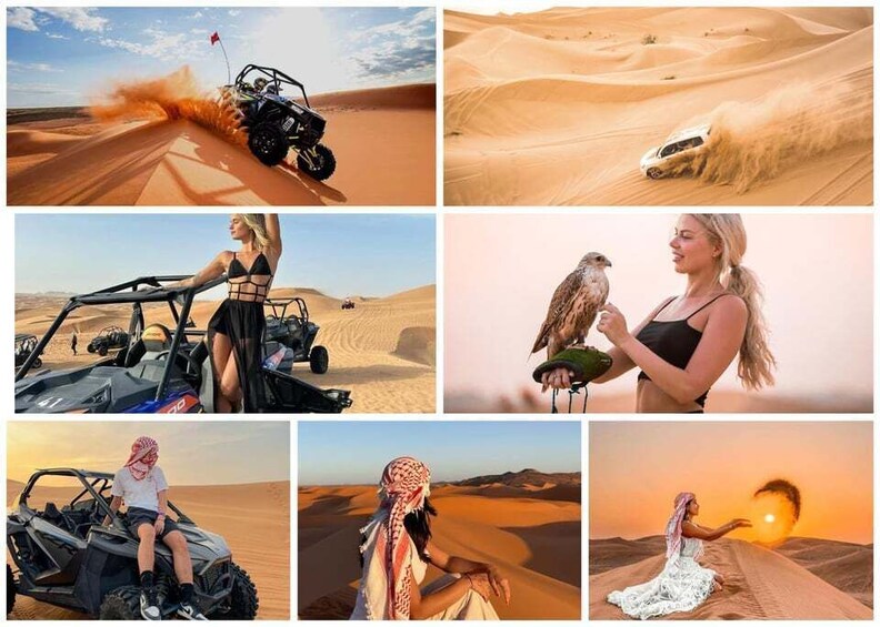 This Option Includes Desert Safari, Dune Bashing, Free Camel Ride, Inland Sea, Sandboarding and Hotel transfers.