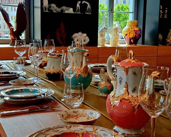 After an inspiring city tour, we cordially invite you to a short break: Enjoy a cup of freshly brewed coffee – served in one of the most exclusive and oldest coffee services in the world. On an exclusive tour of the MEISSEN Signature Store, you'll immerse yourself in 315 years of craftsmanship, design history, and royal elegance. Discover how the natural raw materials kaolin, water, and fire are used to create artistic masterpieces – from limited masterpieces, fine tableware, and interior pieces to design statements.