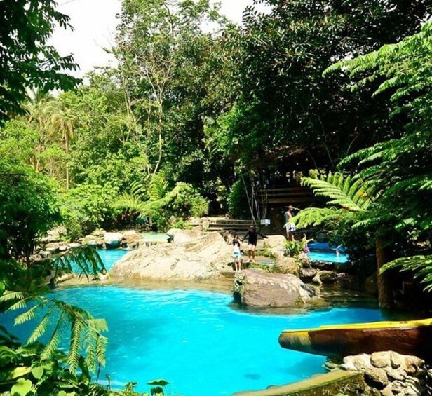 Begin your adventure at Forest Camp, a serene resort nestled by a cold mountain spring, surrounded by lush vegetation and towering trees. Swim in natural spring pools, relax in hammocks or cottages, and take in the peaceful atmosphere. Enjoy native-style architecture, mini-bridges, gardens, and local delicacies in the on-site café.