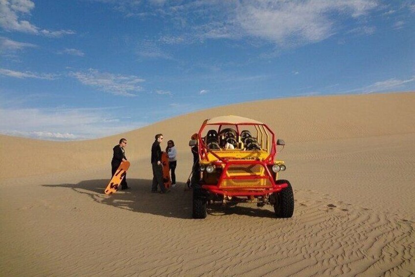 Early departure from Lima heading south, stopping for breakfast en route. Upon arrival in Paracas, we'll take a sea excursion to the Ballestas Islands, with a view of the Candelabro geoglyph. We'll then continue to Ica to visit the El Catador winery, where we'll taste artisanal wines and piscos. After a traditional lunch, we'll explore the Huacachina oasis and enjoy an exciting dune buggy and sandboarding adventure. We'll return to Lima in the afternoon.