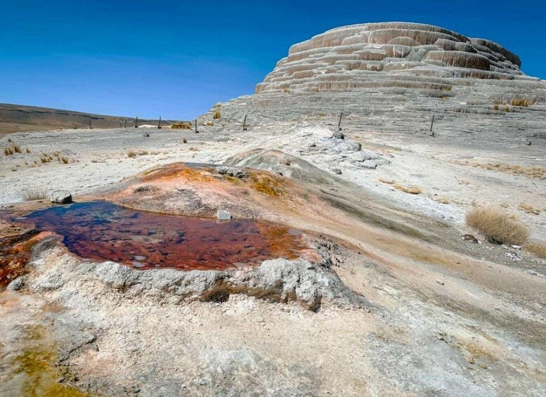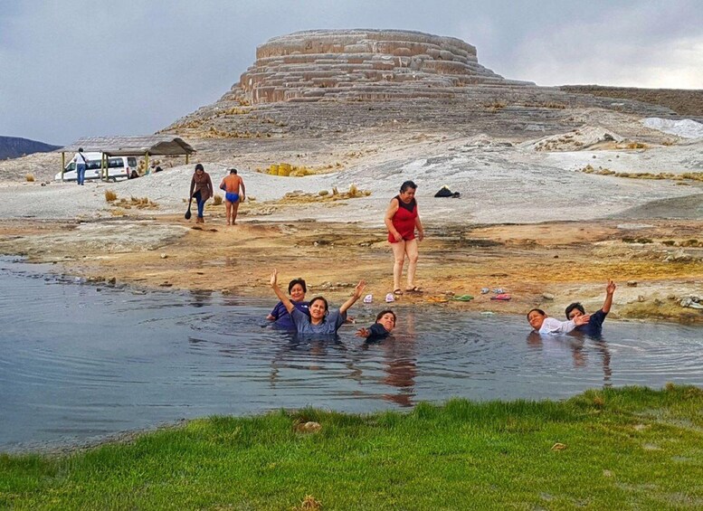 Arrival at Pachapupum Volcano: Upon arrival, we will explore this impressive cone-shaped natural monument. We will climb up steps formed by erosion to the top of the crater, where you can admire an opening of 10 metres in diameter, with boiling water inside, the result of the heat of the earth.