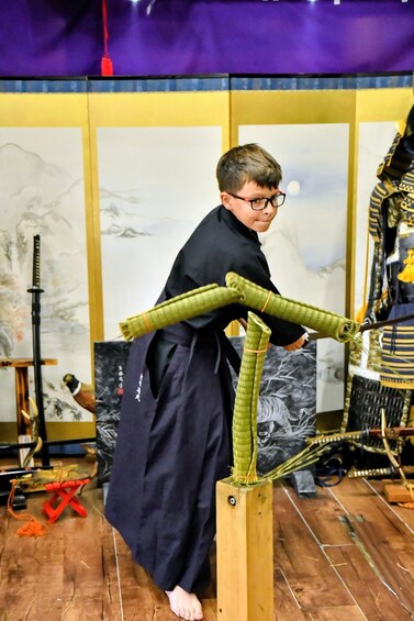 Learning the Samurai Sword. At that time, you will be allowed to wear a serious sword. Participants will try their hand at sword cutting with a samurai sword.