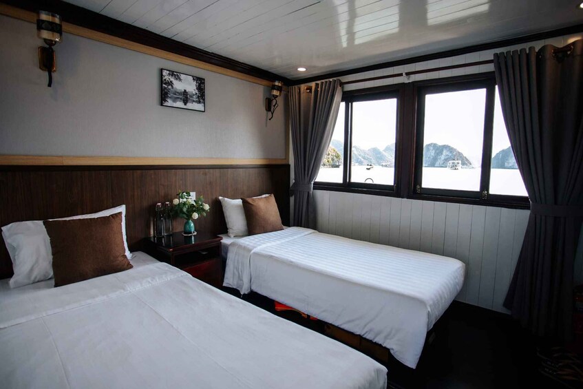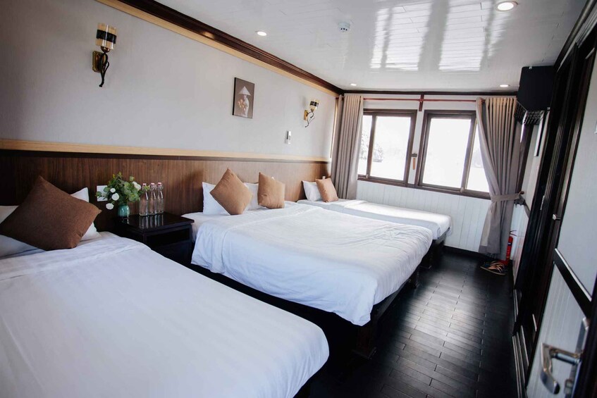 Your final morning begins with a peaceful breakfast before visiting Thien Canh Son Cave, known for its sparkling stalactites and breathtaking panoramic views. Conclude your journey with a farewell brunch as the cruise makes its way back to the harbour, leaving you with lasting memories of the serene Bai Tu Long Bay.