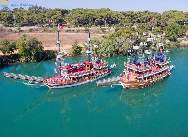 Our Alanya Manavgat boat tour is a peaceful tour by joining your loved ones. You can take photos by enjoying the magnificent view with the relaxing water sound waiting for you and immortalising the moment. Manavgat, a district of Antalya, is 70km from Antalya, 60 km from Alanya, and 5 km from Side, respectively.