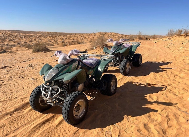 Leave behind urban life and enter a world of tradition as you pass through the rural village of Beni Kheddach. The paved road ends, and the real adventure begins—off-roading across a striking rocky desert. Enjoy a photo stop with panoramic views over the vast Djeffara plain.