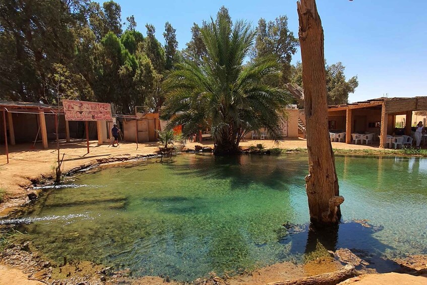 • Take a dip in the natural hot spring in the heart of the oasis