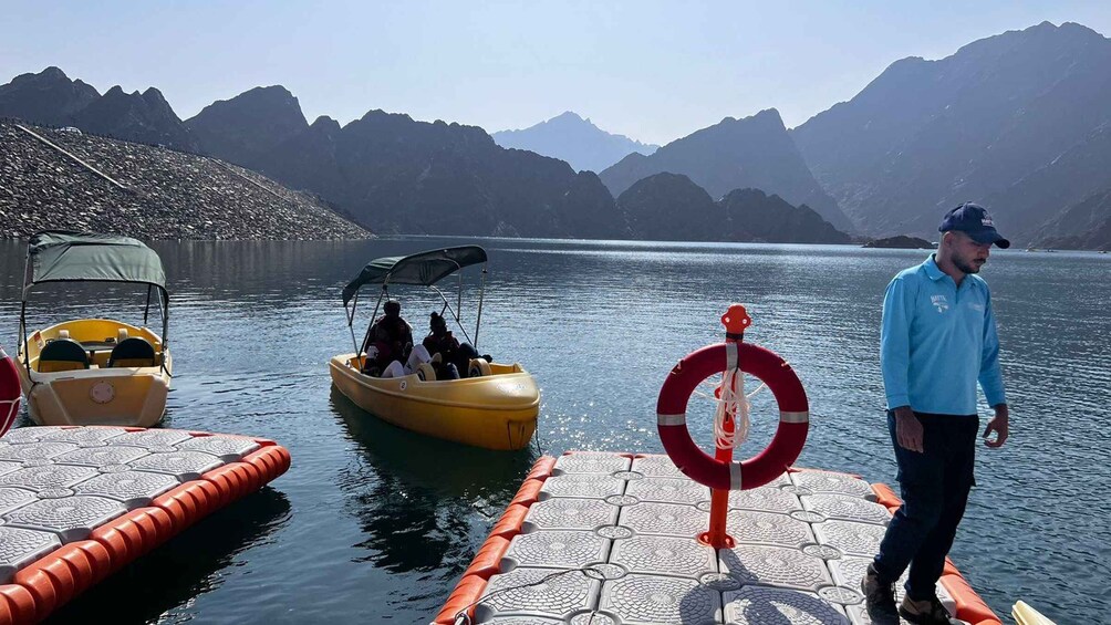 Our trip will begin in Dubai, where our team will pick you up from your hotel. We will drive directly to Hatta Dam, where the adventure kicks off with a 45-minute kayaking session on the dam. You'll have the opportunity to explore the breathtaking views of the lake and mountains, next, we will visit Heritage Village, where you'll encounter traditional farms and palm trees that showcase the region's culture. After that, we will make our way to Hatta Hill Park, offering spectacular views of the city. We will then stop for a delicious traditional lunch in town,