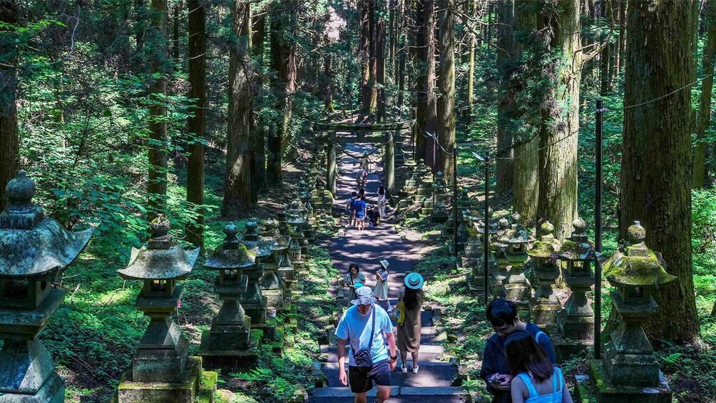Your journey begins at Kamishikimi Kumanoimasu Shrine, a peaceful site hidden among cedar trees. Stone lanterns line the moss-covered path leading up the hillside, creating an atmosphere that feels straight out of a fantasy film. Many visitors come here simply to slow down, breathe the fresh mountain air, and enjoy the silence.