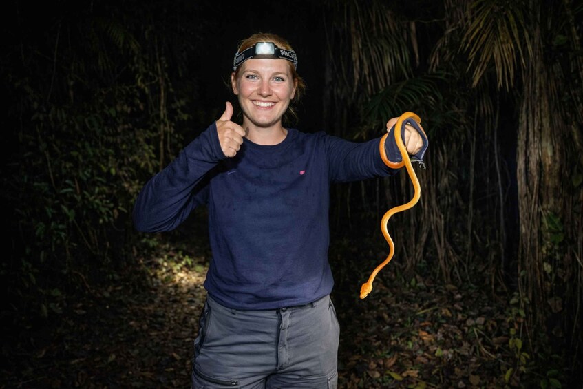 Enjoy lunch and a chance to relax in the lodge's hammock room. Next, visit an eco-butterfly farm and a riverside eco-village. Return to the lodge for dinner before spotting tarantulas, snakes, insects, and birds on a night excursion.