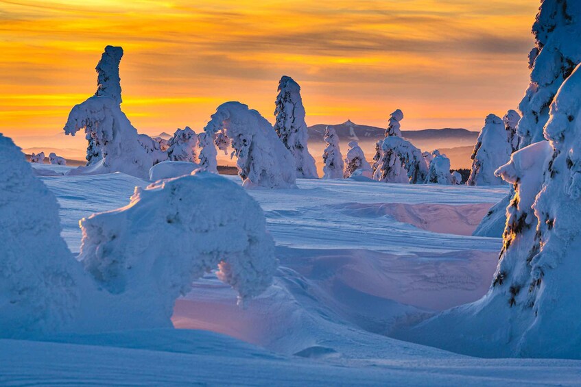 The trail leads you through snow capped trees and every now and then you get a glimpse of the Giant Mountains in the East, neighbouring Germany and Poland in the North and on a clear day, even Prague in the South!
