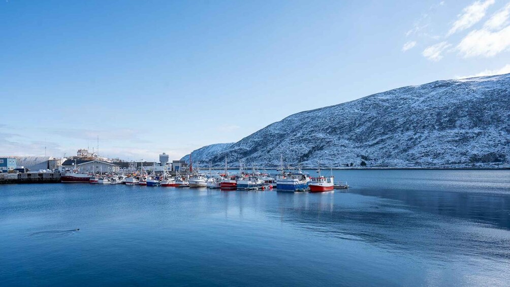 We’ll leave the city behind and travel across the fjord to this island, where dramatic mountains meet the open sea. Along the way, you’ll see vast coastal landscapes — the sharp ridges of Vanntinden, the islands of Helgøy and Nordkvaløya, and the wide view towards Hammerfjorden and Nord-Fugløya. You’ll hear the sounds that define this place: waves, seabirds, and the quiet that settles over you when you step away from noise and traffic. And you’ll feel the air — salt, seaweed, and something raw that stays with you.