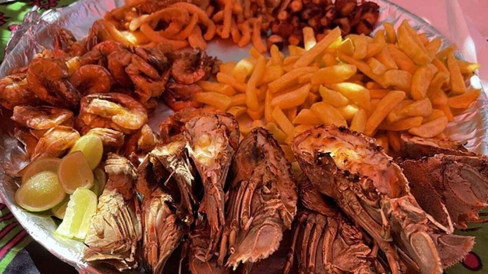 After snorkelling, you'll sail to a beautiful island for a seafood barbecue. The feast includes fresh fish, lobster, calamari, and a variety of tropical fruits. As you enjoy your meal, you can take in the stunning surroundings and warm ocean breeze.