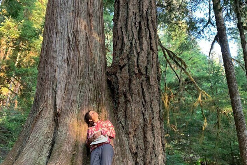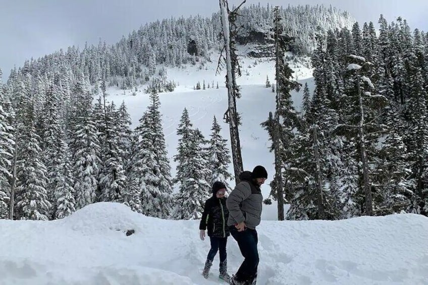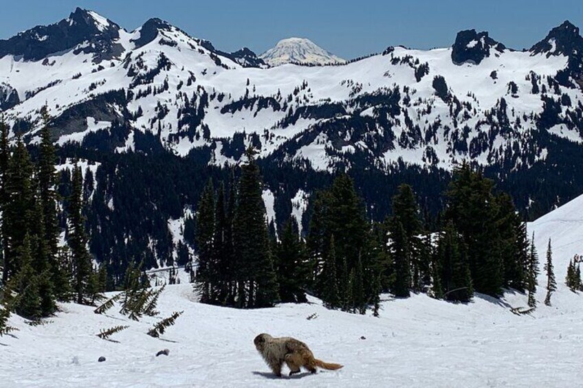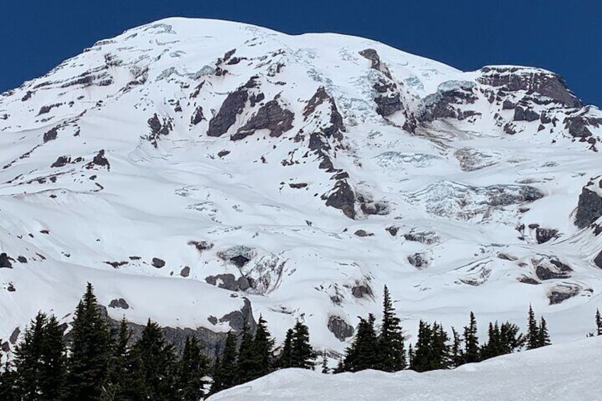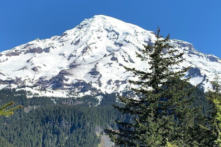 Guided hike on Mt. Rainier - old forest, falls and glacier views