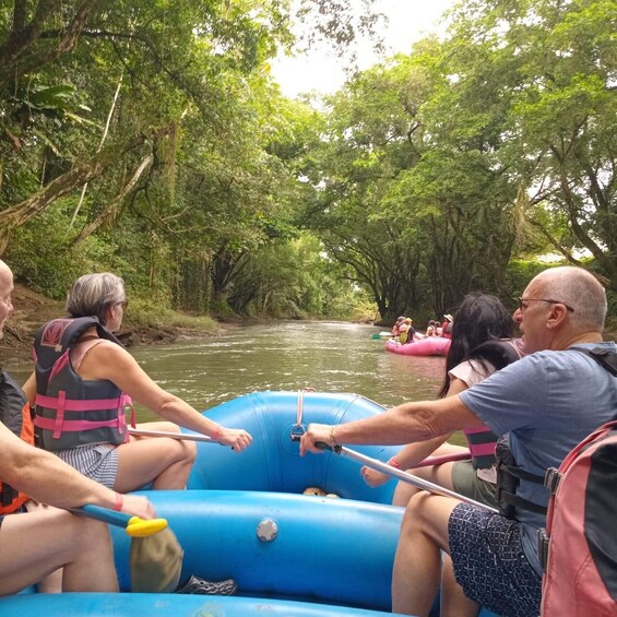 Once on the river, you'll embark on a leisurely journey of about 7 hours, floating through the serene waters of the Peñas Blancas, surrounded by lush vegetation, natural sounds, and unforgettable views. Throughout the journey, you'll have the chance to observe a great diversity of wildlife: sloths, monkeys, iguanas, exotic birds such as toucans and egrets, as well as aquatic species that inhabit this biological corridor. Your guide will help you identify animals, interpret their behaviours, and share interesting facts about the region's flora and fauna.