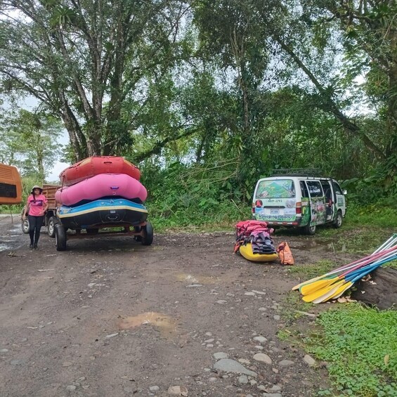 • FF4H+GH Provincia de Alajuela, La Perla, Costa Rica | The departure point is on the left side of the road. Before crossing the bridge, you'll see a large parking lot.